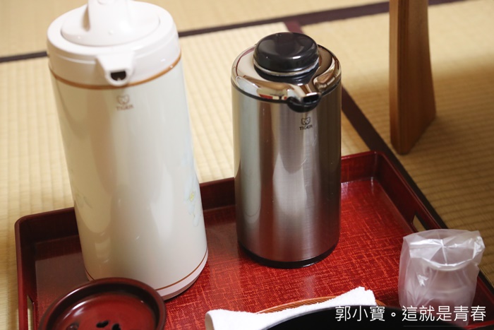| 泡茶用具都在桌子旁邊,裡面茶罐有煎茶,兩壺保溫壺一冰一熱通通都有。 |