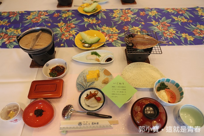 | 因為我們行程排得太滿,所以匆匆的放著行李就趕緊來到宴會廳準備享受晚餐了,吉田屋的一泊二食大約一個人士台幣4000~5000不等,不過我們這次去的時候是屬於淡季,所以非常便宜,提供晚餐跟早餐真的都很棒。 |