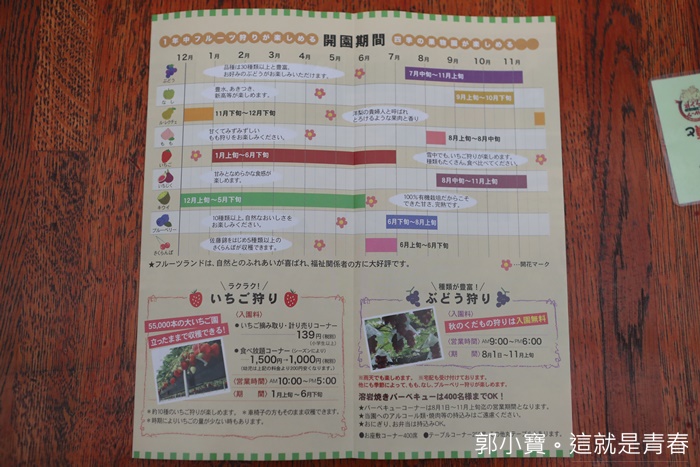 | 附上白根果園的簡介表,裡面還有各個時間來可以品嘗到水果的圖示。 |