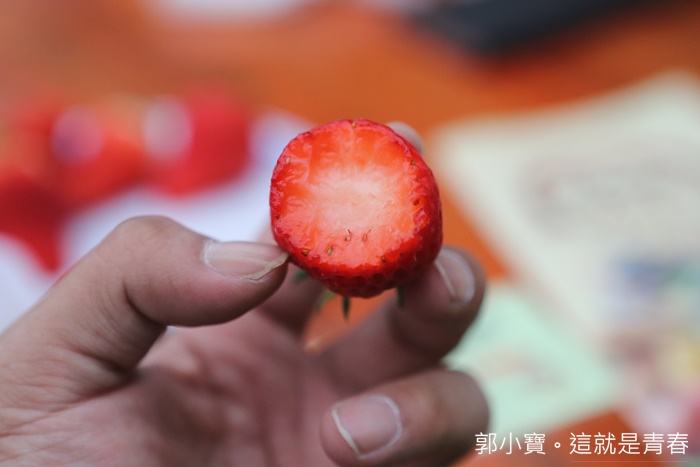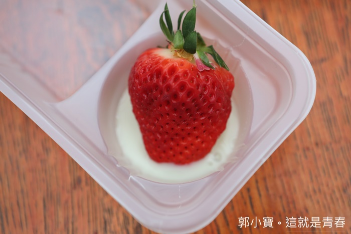 | 還會附上煉乳,草莓加上煉乳真的很無敵,這也太誘人了,其實吃到第三顆的時候,煉乳就被我用光了,真的太恐怖的美食了,這行程真的是讓人人鼓掌阿!! |