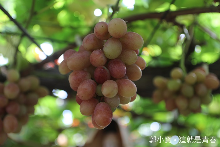 | 但是也開放讓客人直接摘取,但是建議大家還是吃桌上的,因為有時候我們比較不懂葡萄到底該不該摘,有時候摘到還沒熟的或是摘一摘又不吃其實很浪費,就坐在棚架欣賞這美麗的葡萄寶石吃著甜度破表的麝香葡萄就很愜意了! |