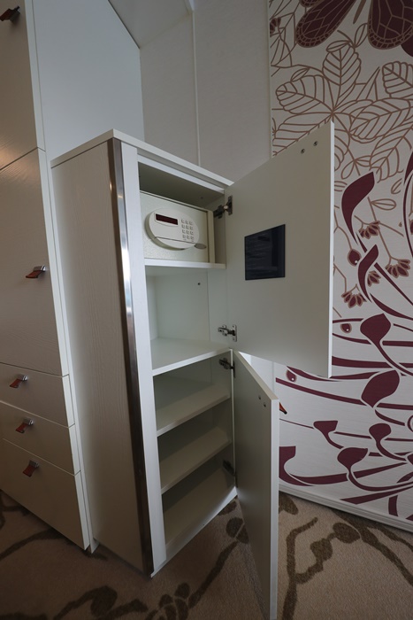 | 還有超大的衣櫃,所以我真的超級佩服COSTA歌詩達郵輪的設計,一個小房間的空間就可以有那麼多的收納空間以外,還有很多的活動空間,在房間裡面一點都不覺得狹小。 |
