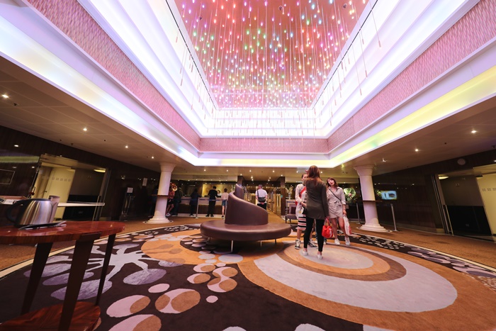 登船後的第一個地方就是屬於大廳,其實這個地方我從第一天登船在這邊辦房卡跟信用卡連線後就也沒有踏進來這邊了,不過剛進來的時候確實有讓我震撼了一下,確實跟我以前搭的郵輪很不一樣,頗有高級飯店的氛圍,重點她整條船的地毯都整理得超好的,也沒有異味,踩起來都非常的舒服,就像是新的一樣。