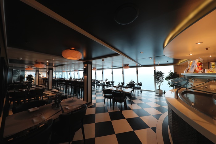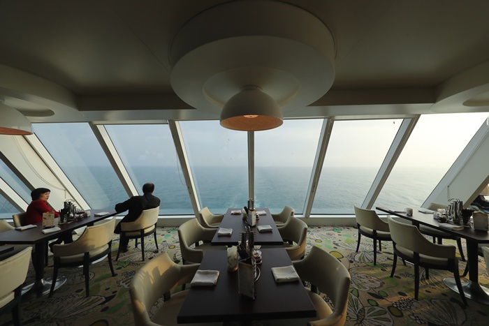 | 10樓的自助吧餐廳我最愛的是船尾的這個用餐空間,有大面積的落地窗可以看到海洋的景色,超美的! |