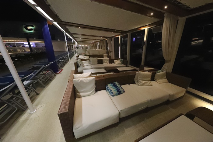 | 甲板上的沙發區也超舒服的,尤其新浪漫號全都是採用玻璃帷幕所以非常漂亮,不用用鐵欄杆圍起來,這質感就真的差滿多的,有時候我還覺得時間真的不夠多,因為行程超滿都沒辦法好好享受這些休閒的地方。 |