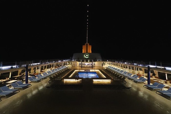 | 夜晚的甲板真的很美,不過這一張照片是半夜12點多大家差不多都入睡才來拍的。 |