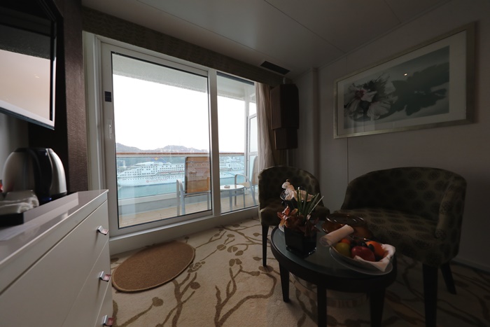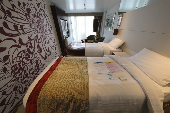| 看看這光景真的很難想像是郵輪上面的房間,當天拍完照上傳臉書的時候,一堆郵輪達人都說這大概是他們看過最漂亮也最乾淨舒適的郵輪房間了,雖然我搭過的郵輪沒有很多,但是至少新浪漫號是我目前住過最棒的房間! |