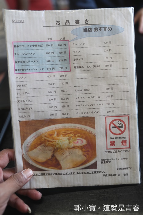| 菜單還滿簡單的,特別畫藍格子的是なまえ的招牌,最主要是分細麵跟粗麵,不過這邊的拉麵好像是粗麵比較有名。 |