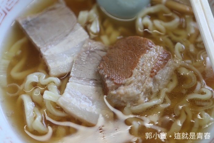 | 另一碗就是最早的中華醬油拉麵延伸出來的,除了有兩片五花肉以外,還有另一塊很像是台灣滷肉的肉片,魯的非常透。 |