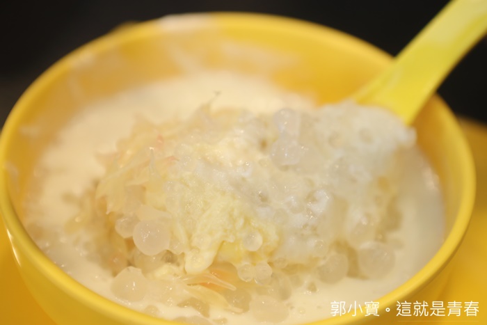 | 一般的楊枝甘露在這邊叫楊枝金撈,除了楊枝甘露該有的東西以外,另外加了寒天跟最上方的柚,整體的風味更佳的豐富,尤其家了柚子的酸甜感更加的突出,真的深受超多人的喜愛。 |