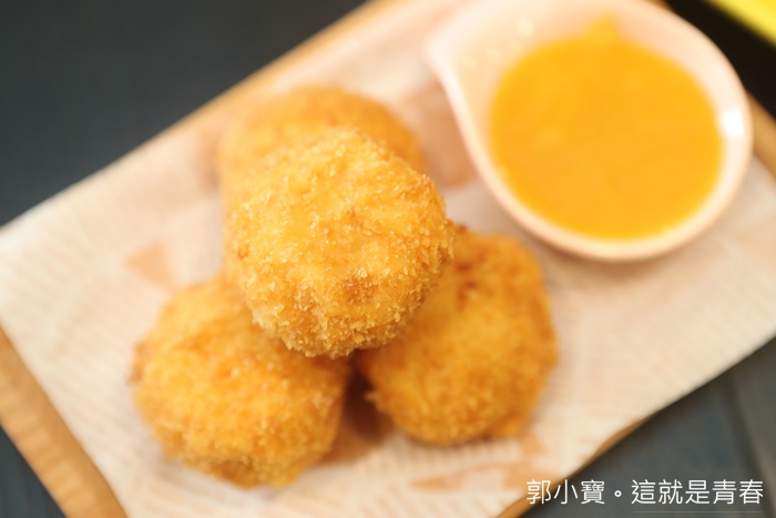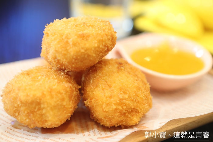 | 熱呼呼的蝦餅真的很好吃,口感非常彈牙,沾上芒果醬那鹹甜鹹甜的滋味頗讓我喜歡的。 |