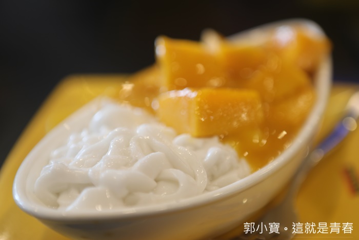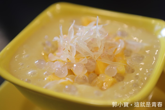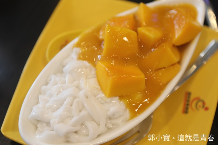 芒果切的很大份,每一口都是香甜的芒果果肉,搭配白色似乎像是粉條的甜品非常過癮,這一道甜品我還滿喜歡的說。