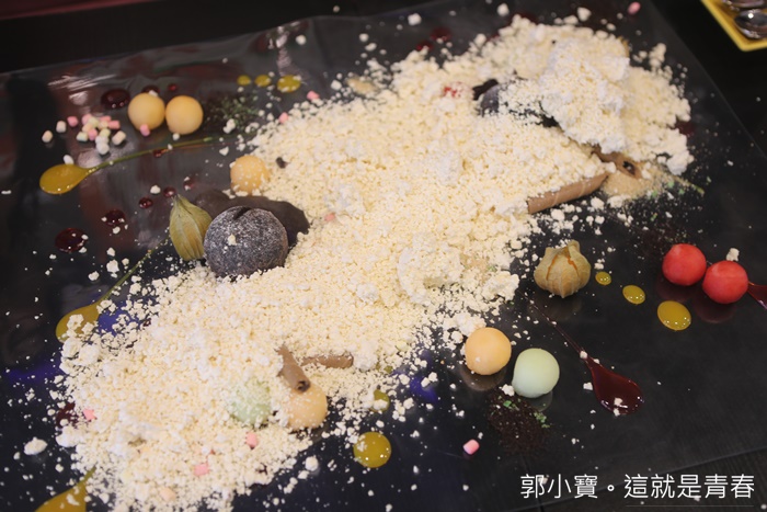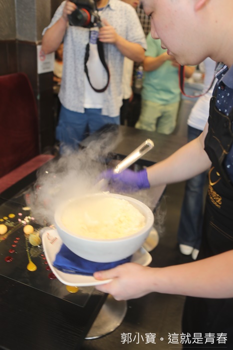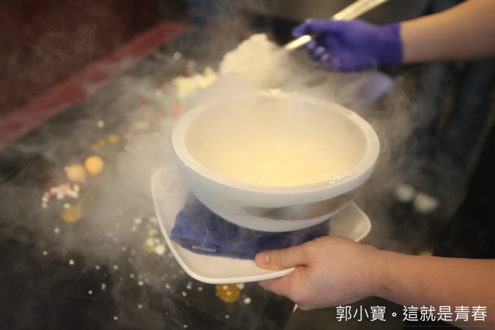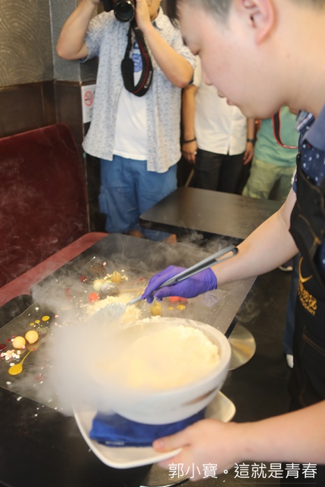 在灑上似乎剛從液態氮內出來的冰品撒上,真的非常特別的一道冰品,口味倒是一般但是呈現的過程卻讓人驚呼連連。
