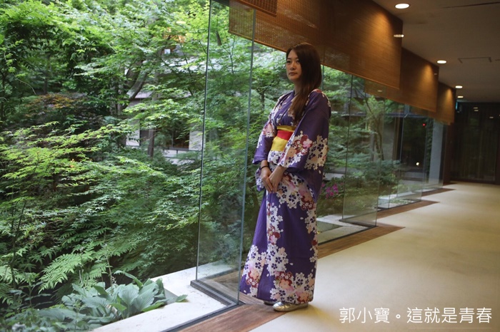 | 換好出來剛好可以在這邊拍照,這邊比一樓大廳的落地窗還要漂亮,他們家的浴衣也都很美,華麗的程度直逼和服。 |