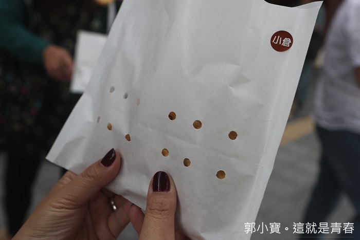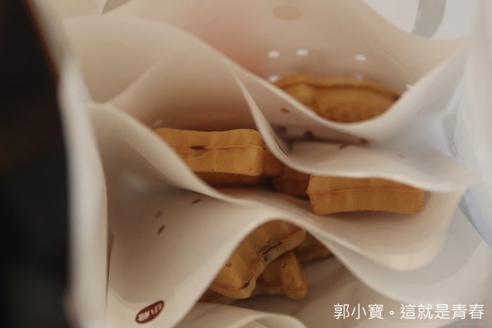 | 就連紙袋都有稍微設計過,紙袋後面的孔洞是為了讓水氣排出,很多這類型的點心通常放入紙袋一下子整個鯛魚燒就變得外皮濕濕的口感不是很好,但是有這些小孔就不會了耶。 |