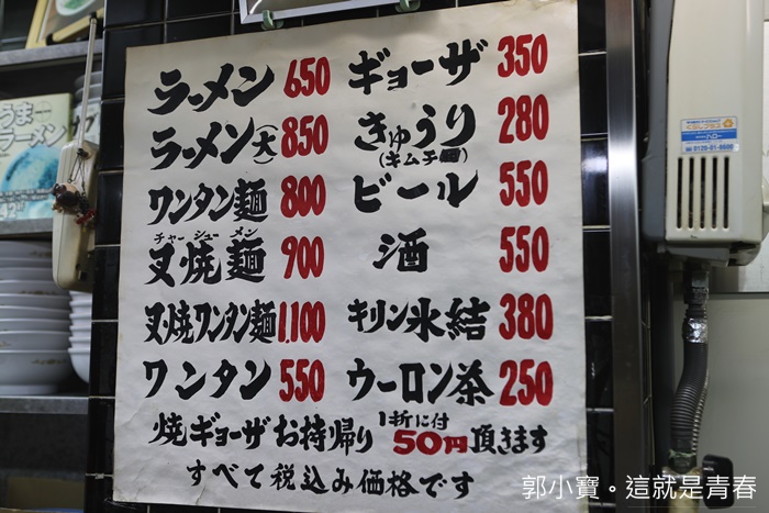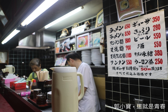 店內沒有菜單,全部的拉麵跟品項都貼在牆壁上,我也是經過一番比手畫腳才順利點到餐的,不過老老闆一點都沒有不耐煩,跟我一個一個的比對,他們兩個人真的很可愛。