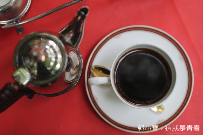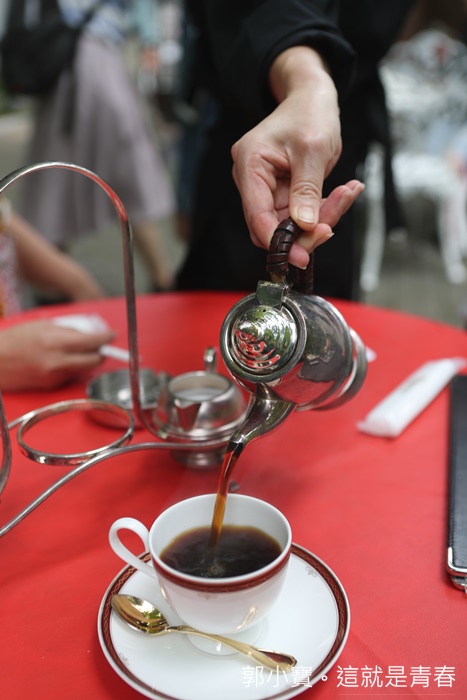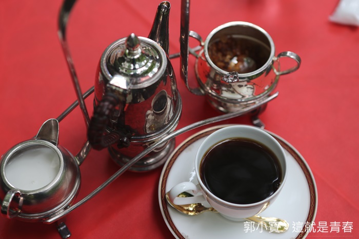 基本上拍照拍個不停,我也不知道同行友人幫我點甚麼咖啡,咖啡的器皿也非常特別,巷一個天平一樣,中間的咖啡壺,第一杯會幫客人倒上後剩下就放在壺裡面,兩邊一邊是牛奶一邊是糖。