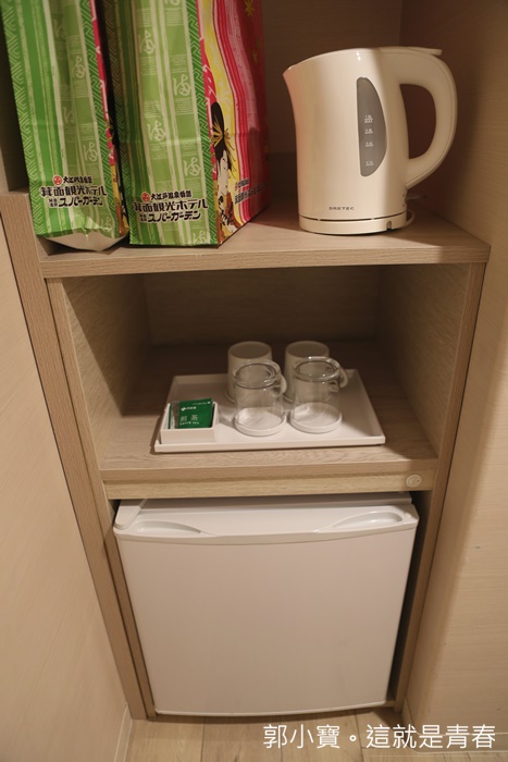 桌子下的層櫃擺訪了小家電用品,冰箱的冷度還算強,有的商旅的冰箱真的一點都不會冷。