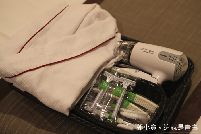 床上的置物籃裡面除了有盥洗用品以外還有吹風機,她們家的吹風機雖然是小隻的,但是還滿好吹的,風量還算強。