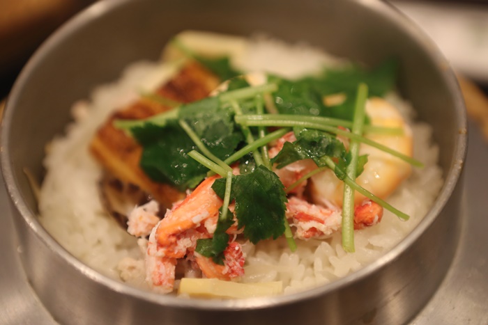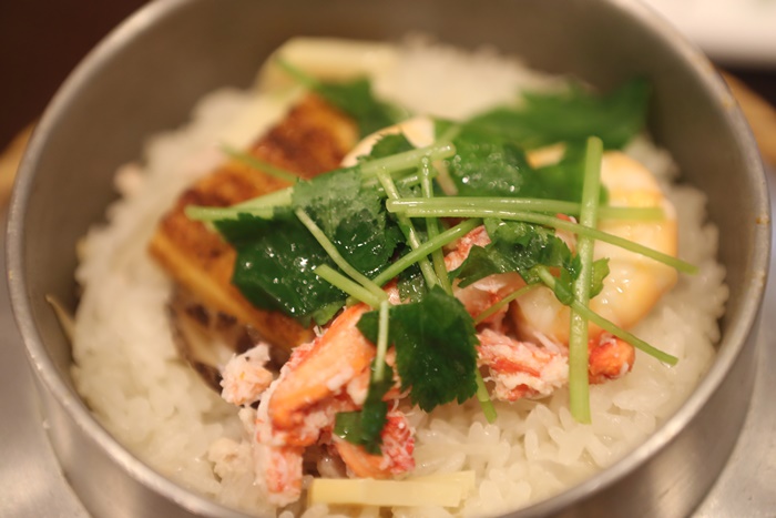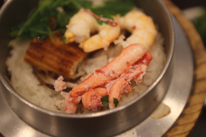 | 裡面的食材我翻了一下大概有蝦子、蟹肉、鰻魚,貝類等等的還滿豐富的,看起來就很令人流口水,把這些海鮮食材跟白米放入釜燒鍋內烹煮,食材的精華也都跟米飯混合在一起,那種清香真的很不賴。 |