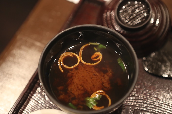 | 這七種釜燒就是志津良的招牌釜燒飯,裡面有七種食材,一打開來就香氣撲鼻,那種香氣是淡淡的香氣很舒服,不是很重口味的那種。 |