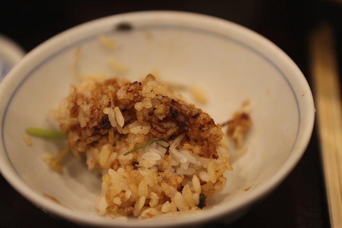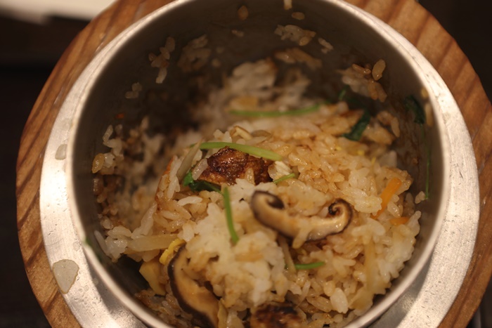 | 鍋巴的比例不會很高,咬起來很香,有點硬度但不會太硬,我很喜歡這樣一個釜燒飯但是有三種不一樣的米飯表現。 |