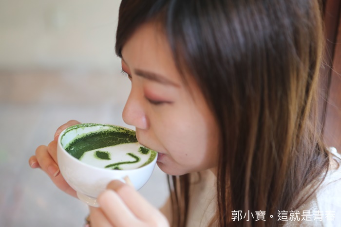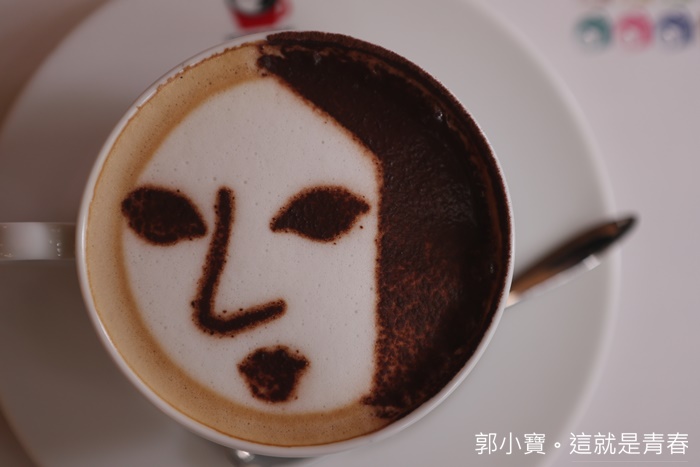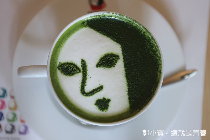 | 撒上抹茶粉的咖啡歐蕾,這よーじや 優佳雅招牌藝妓頭像在這邊的咖啡或是甜點都會有造型,但是喝起來並不是歐蕾,就是抹茶咖啡,因為字面上的感覺就是抹茶歐蕾,也可能是我解讀錯誤。 |