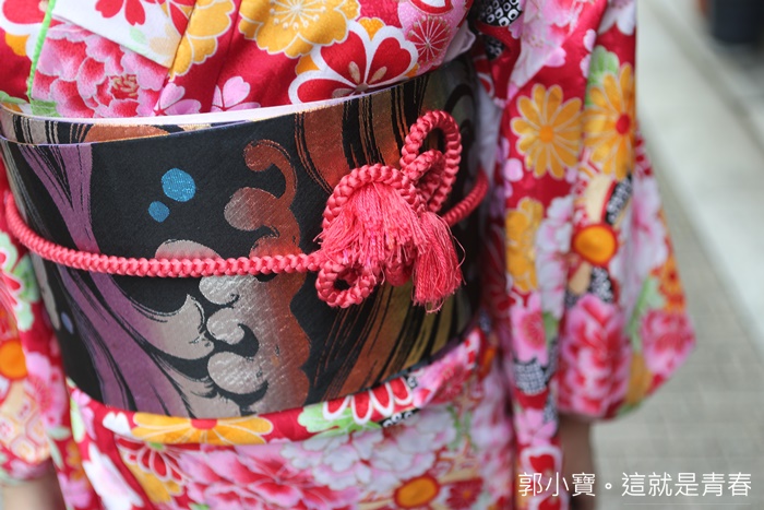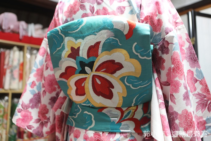 | 讓我推薦他們的原因就是和服中間的這個綁帶,其實裡面還有一個硬框,這樣才有辦法把綁帶維持的又挺又美,而且還可以維持女孩子的挺度,很多和服出租店現在都簡單行事,所以可以看到清水坂上很多女孩的和服到最後都有點凌亂,綁帶是可以另外搭配你喜歡的款式。 |
