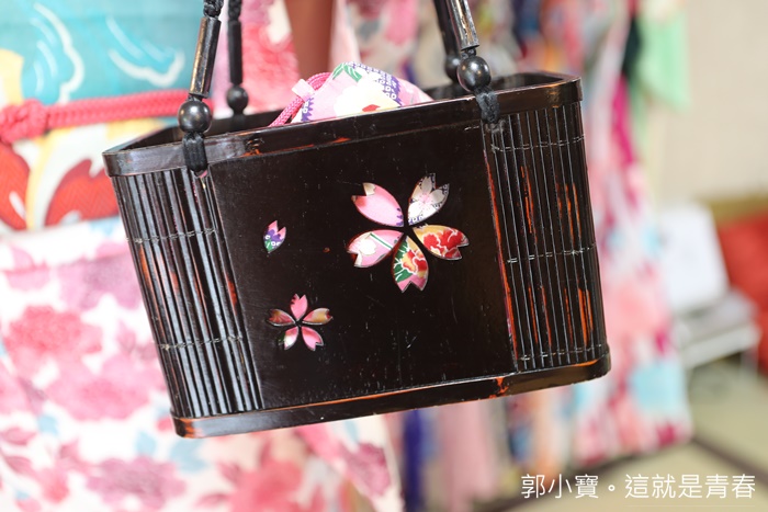 體驗過京都很多出租店,第一次看到有這類似硬殼籃的選擇,裡面在放手包,花布還可以透過硬殼的簍空映出櫻花的圖案,拿在路上還有人問怎會有這籃子可以選擇,一整個超可愛。