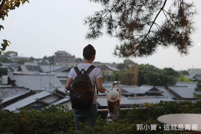 點完餐後我們一群人就馬上跑去他的庭院當網紅了,這邊真的超好拍的,重點都沒人來跟你搶好點好角度,不會怎麼拍都有路人,這邊也可以拍下一整個超美的東山區老建築,還附贈一個五重塔XD