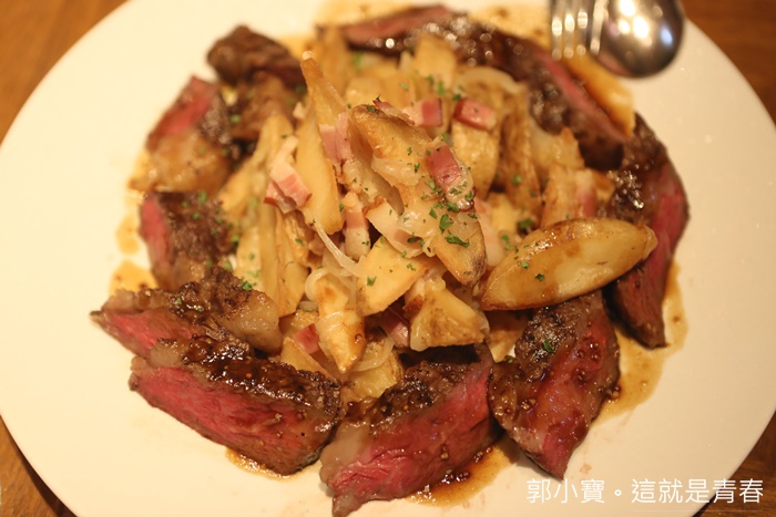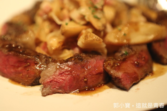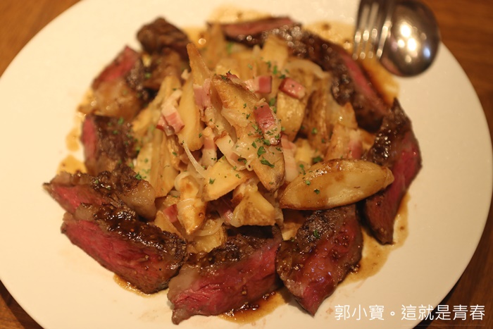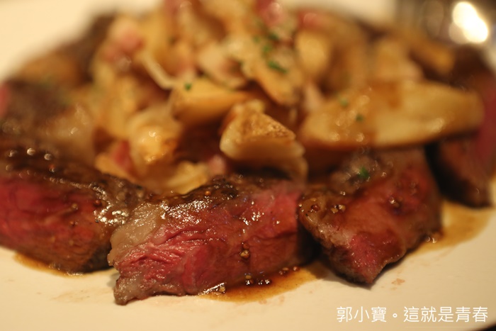 這牛肉真的非常的好吃,熟度也處理得剛剛好,每一口都是鮮甜的油脂,肉質也非常軟嫩,我喜歡外皮帶點焦香,真的很美味的牛排肉,超愛,順邊就被我們一群人掃空,大塊的馬鈴薯也很美味,沾著肉汁超美味!