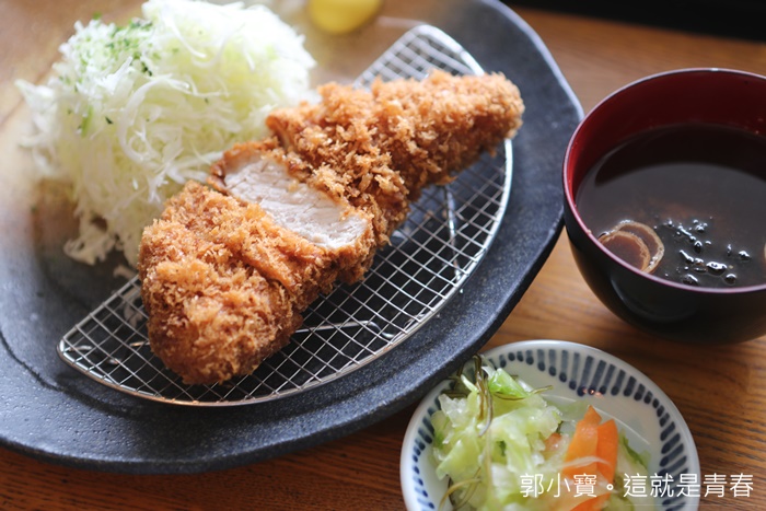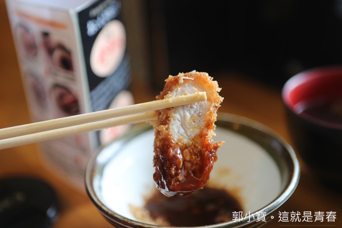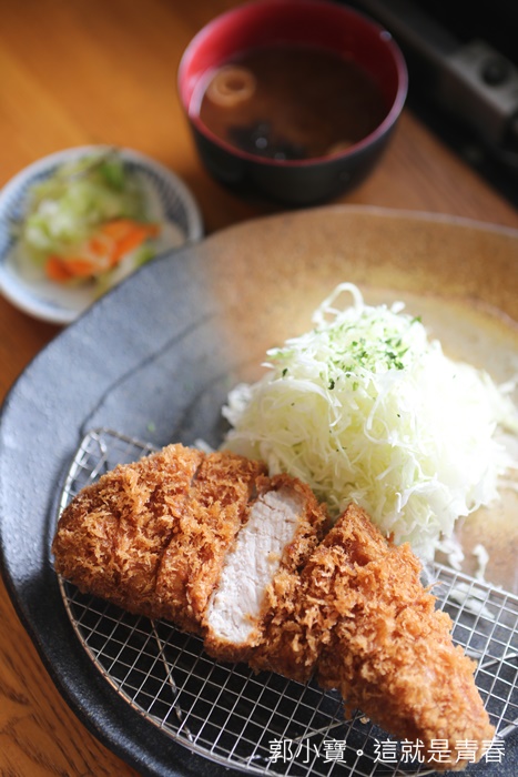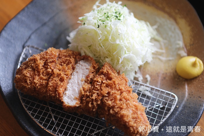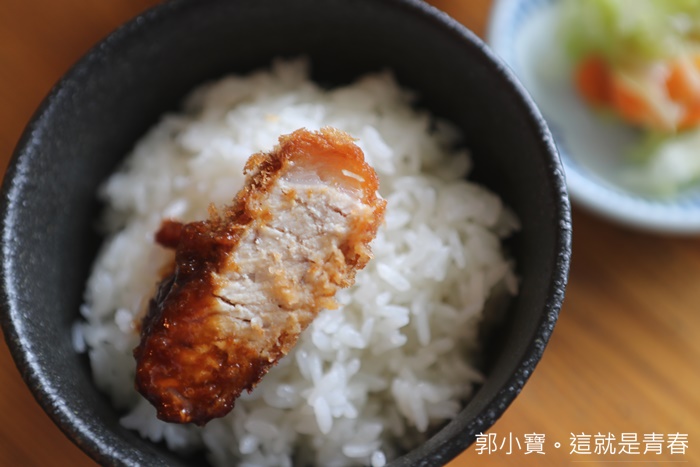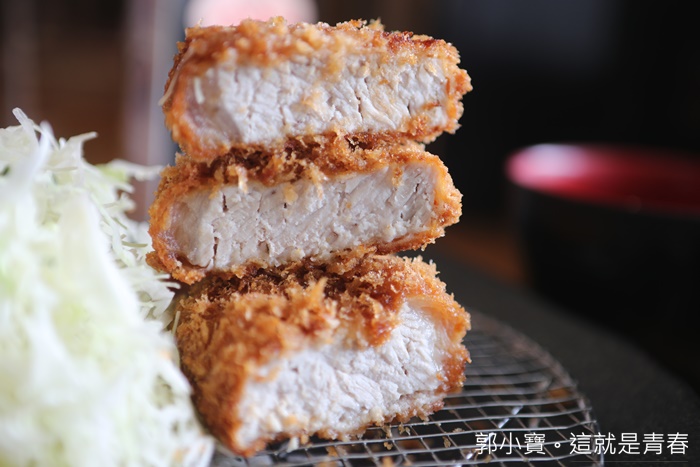 | 看看這超厚切的炸豬排真的很誘人,這樣夾來夾去也沒看到麵衣剝落,一口咬下那酥脆的麵衣真的很厲害,豬肉非常有彈性且多汁,咀嚼起來一點都不會乾柴,肉的纖維部會難咀嚼,確實跟六白黑豬的口感差不多以外還多了一股香氣,獨特的三元豚香氣。 |