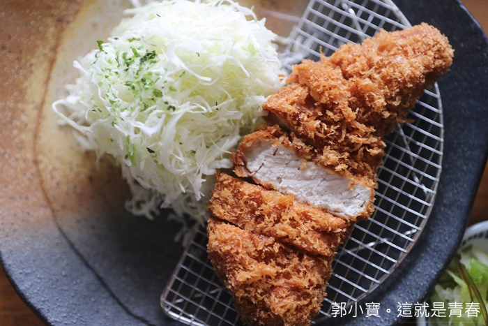 | 我的炸豬排一端上來的時候就殺了我不少相機空間,這炸豬排也太漂亮了,且麵衣看起來好酥脆,我這樣移來移去麵衣跟豬肉依然緊緊的擁抱在一起,高麗菜絲給的量很多,不夠還可以跟服務人員說。 |