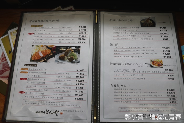 | 打開主菜單第一眼就決定了餐點,當然還是主攻厚切三元豚啊,且總店這邊的價位比起東京的價位還便宜一些。 |