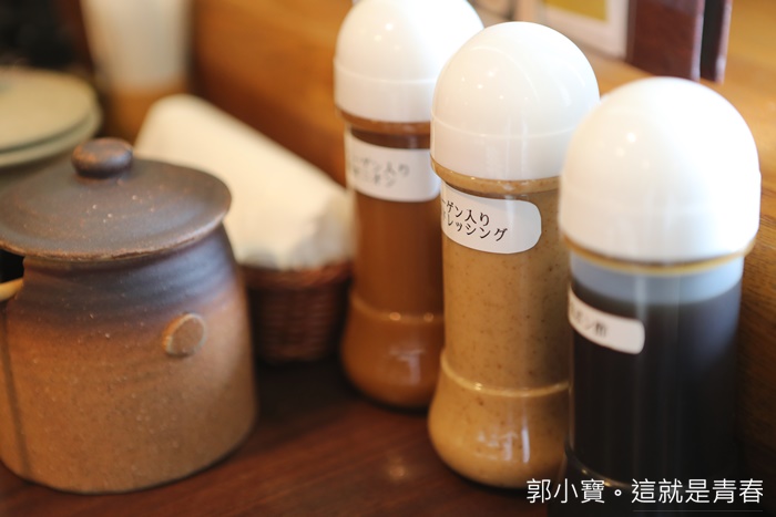 | 炸豬排的基本調味料通通都已經放好在桌上,平田牧場的調味料比起一般的炸豬排店還多了一些選擇。 |