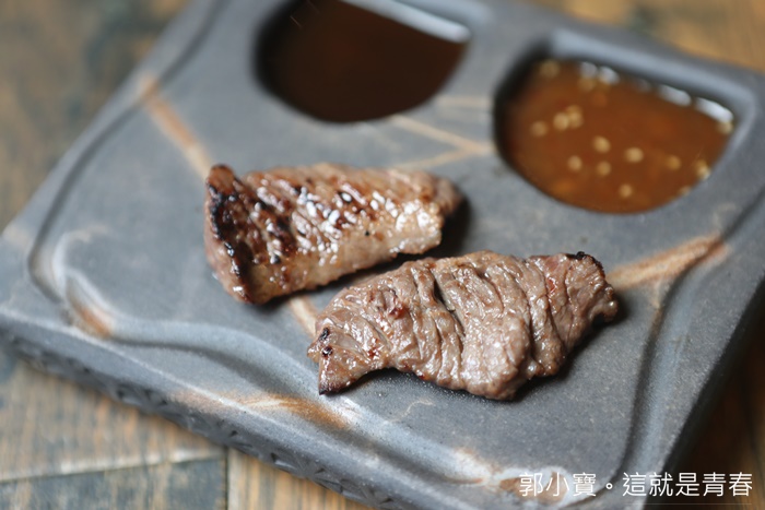 五花肉的部份是屬於熟成仙台牛,雖然油花看起來不像其他和牛的大理石紋路那麼漂亮,但是熟成的技術非常好,入口那軟嫩多汁的滋味真的讓人銷魂。 |