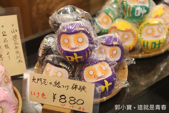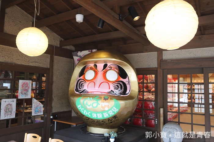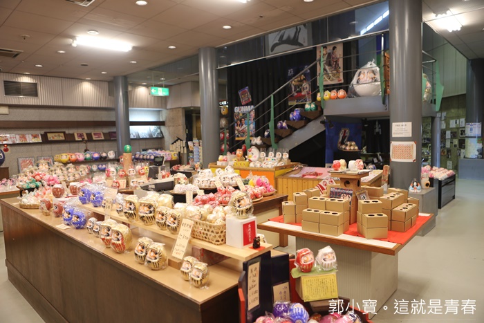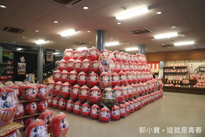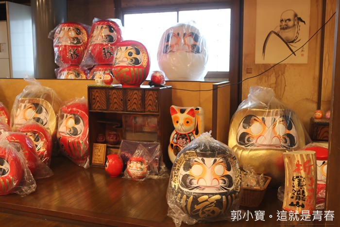| 一進去工廠裡面先印入眼簾的全是滿滿的達摩像非常壯觀,大大小小的達摩像放滿了整個販售區,根本就是達摩主題專門店,非常值得來這邊參觀一下,大門屋是目前日本最大繪製達摩像的地方,日本很多重要的達摩像都是出自大門屋之手。 |