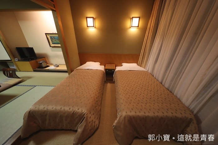 | 今晚住的是兩張單人床,沒意外這個空間以前應該是和式房間的觀景區,通常都會放上桌子跟沙發,窗外基本上也都是山景居多。 |
