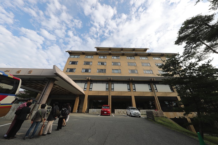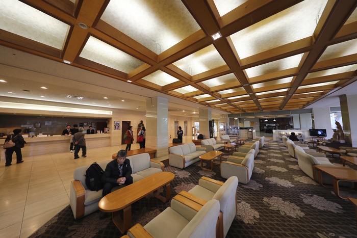 | 八幡館在佐渡島上算是國際級的大飯店,光是氣派的大廳就可以感受出來。 |