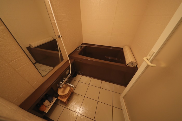 | 浴室裡面也是我喜歡的設施,是可以坐的淋浴,搭配一個中型浴缸,但是來這種日式旅館一定要去泡大眾池溫泉,佐渡的旅館大多都是有溫泉的,且因為佐渡四面環海,大多大眾池溫泉都有面海或是面湖的美景。 |