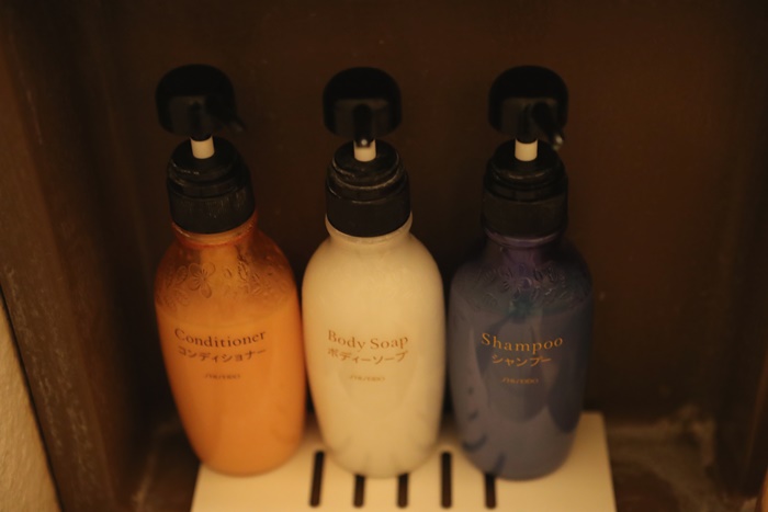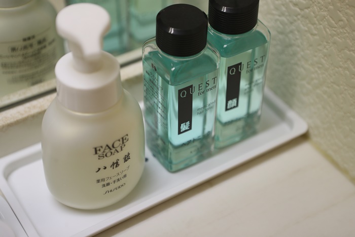 | 洗手台上除了洗手慕斯以外,另外還有收斂水跟髮水,相當貼心。 |