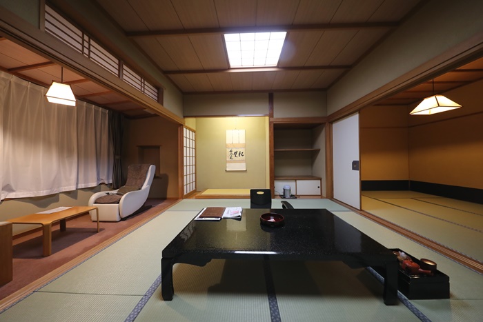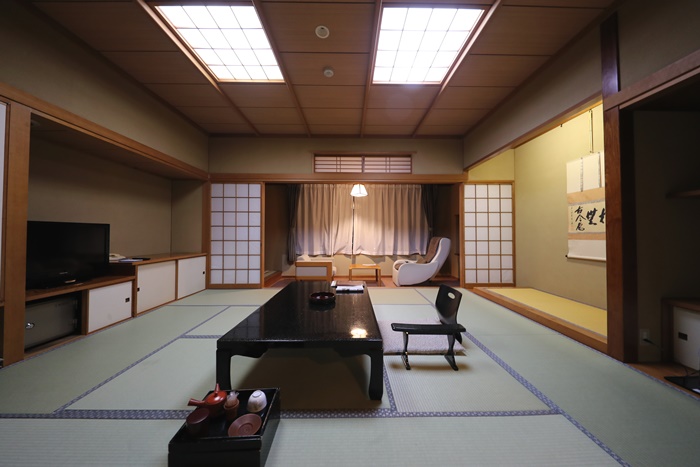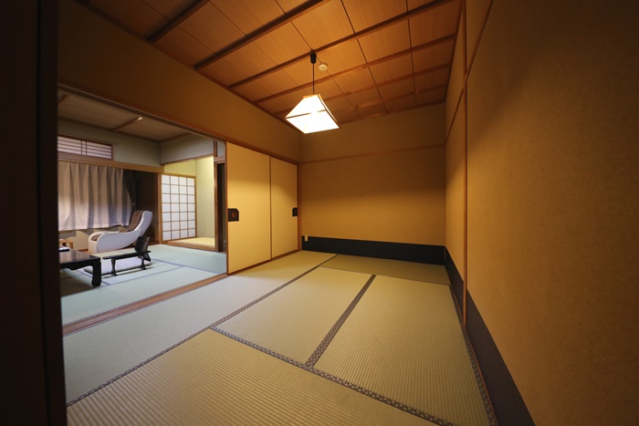 | 裡面的房間是兩個房間,彼此都有拉門,整個拉開後就可以看到超大的廣間,如果真要擠一擠睡覺的話,這房間大概可以睡個10來個都沒問題,真的太大的,且連天花板的木頭都保養的超好,真的沒話說。 |