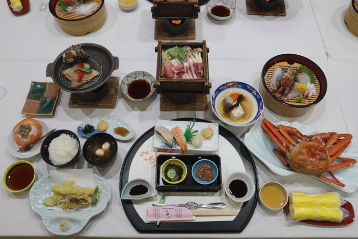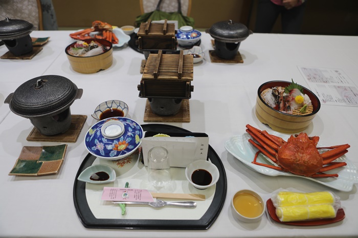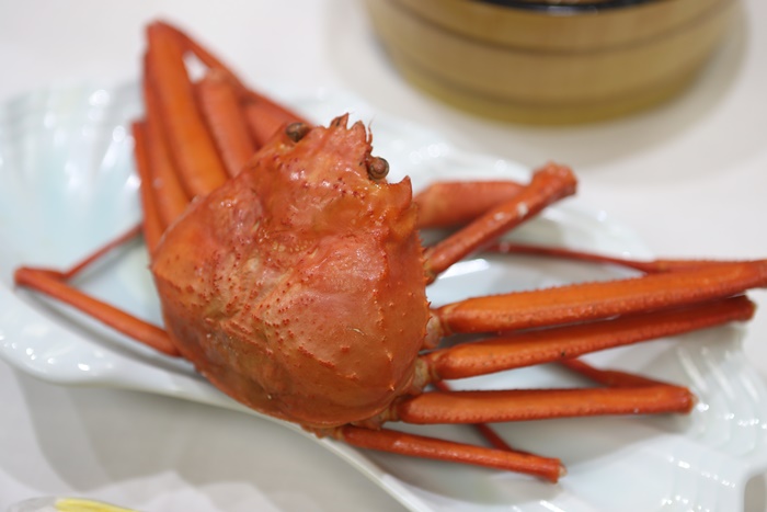 | 一坐下來就看到一整隻的松葉蟹就覺得食慾大開,第一次吃到會席料理有一整隻松葉蟹的,這次預算真的滿足夠的。 |
