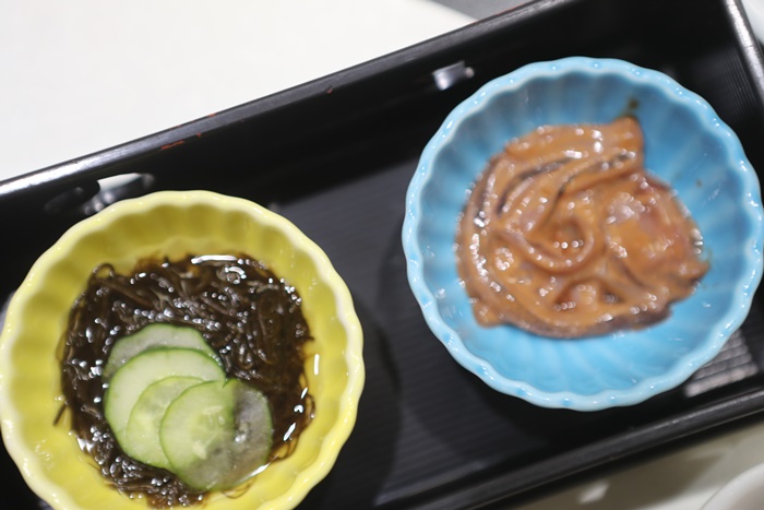 | 接著我請工作人員一次把菜都幫我上齊,會席料理基本上會一次上一半的菜,另一半會慢慢上,我則是為了拍照,所以請工作人員一起幫我上,一整桌的美食都是一人份的,看得我口水直流。 |