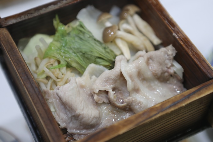| 清蒸的豬五花吃起來不會油膩,搭配野菇跟清菜,爽口美味。 |