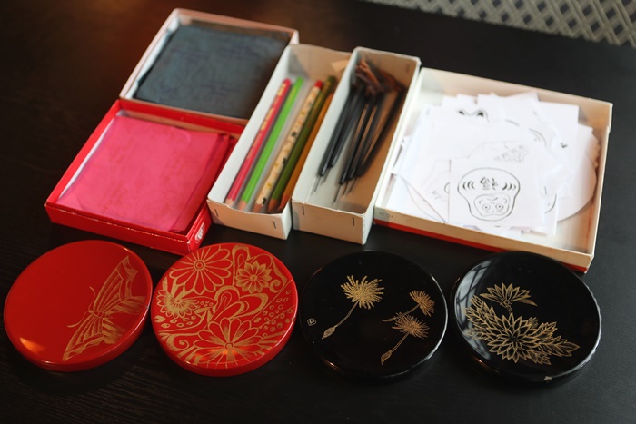 | 這邊也有提供體驗活動,還滿有趣的,日本的漆器非常有名大家都知道,但是我不知道這個算不算是自己製作漆器,把妳選的圖案或者妳自己的創作畫在杯墊上。 |