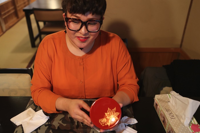 | 最後老奶奶還特別請我們吃點心,也是用新潟越光米特別做出來的麻糬,麻糬外面是粿紅豆泥,吃起來口感偏硬,就是比較硬的麻糬,還滿特別的。 |
