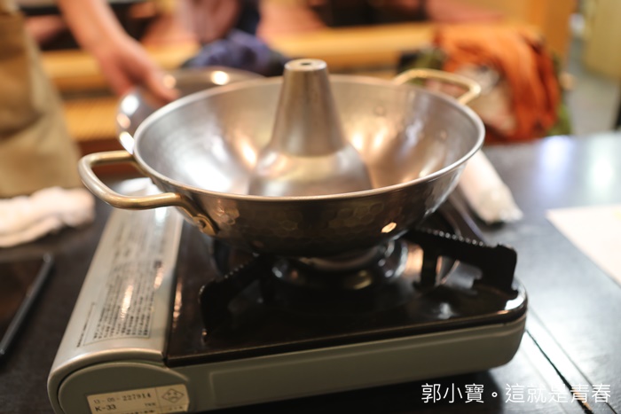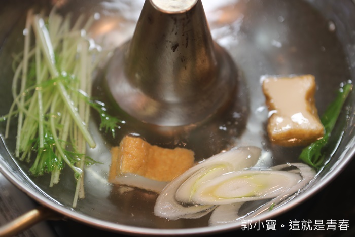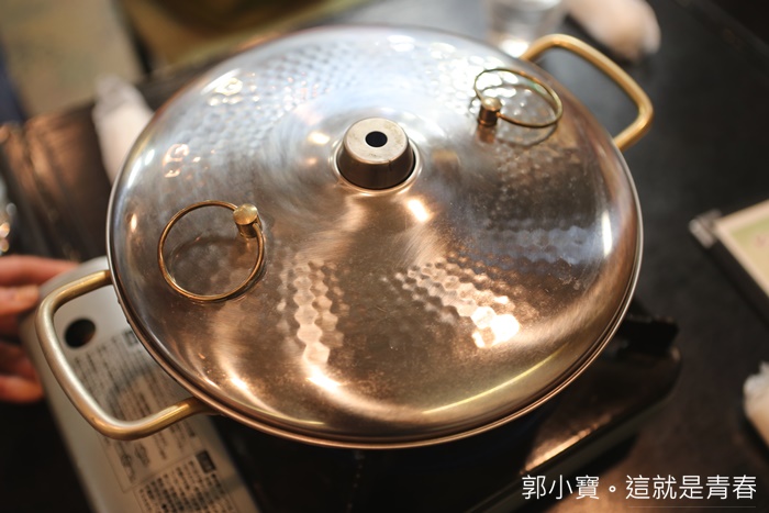 | 它們家的涮涮鍋挺特別的,感覺是用古早味的鐵製紫銅火鍋,但是這邊不用炭火直接上瓦斯爐,涮涮鍋是用這種鍋子,火鍋是用砂鍋,所以我們雖然點了糯米豬跟年糕豬,但是就一個涮涮鍋一個火鍋,不然盛盤根菜盤都一模一樣認不出來XDDD |