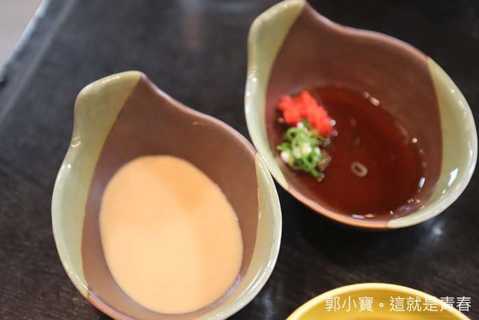 | 店內的兩種招牌醬料,一個是醋另一個是有點像是豆乳醬。 |