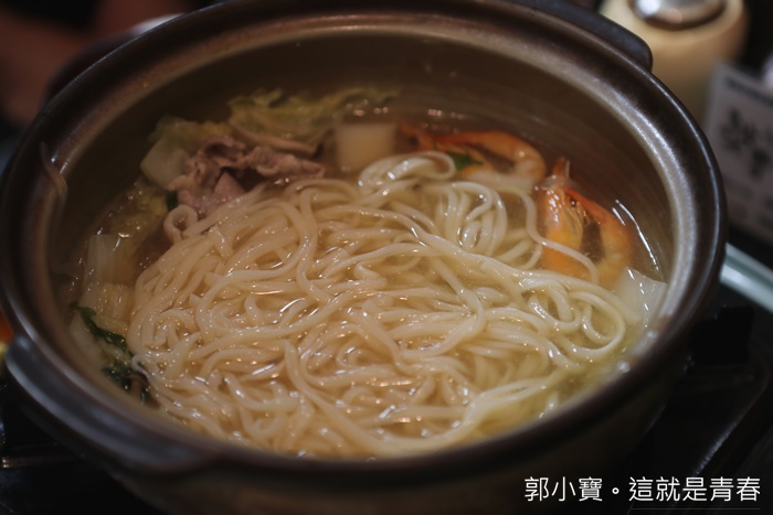 | 吃到最後再把白麵條放進去熬煮,麵條我好喜歡,這麵條非常好吃以外口感也滿彈牙的,麵條本身就帶點淡淡的鹹味所以吃起來非常香,其實我每次來日本都會買日本的白麵條回台灣,我喜歡它們的口感跟本身就有鹹味。 |